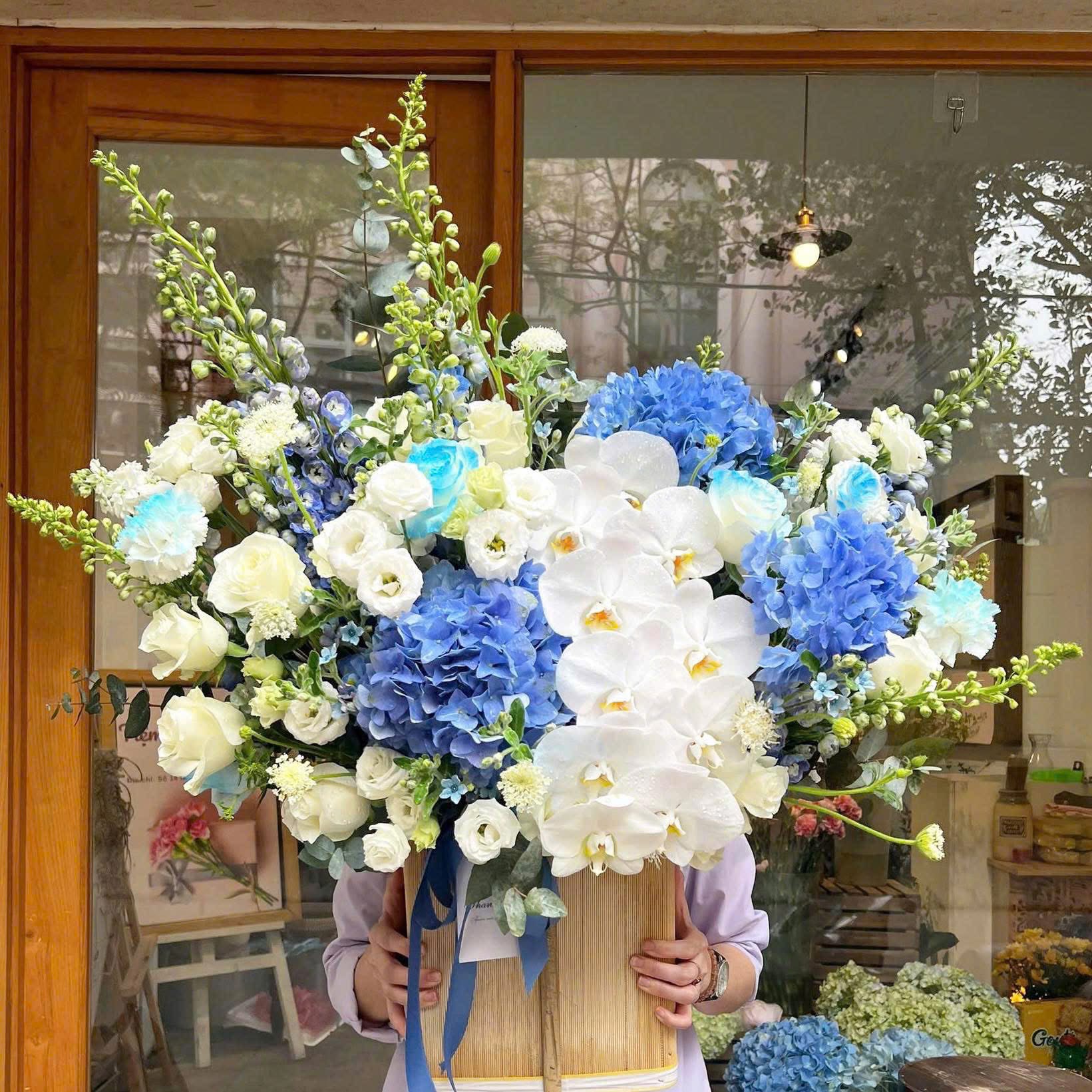 Mỗi giỏ hoa được phối kết tỉ mỉ, hòa quyện giữa sắc màu và bố cục để tạo nên một tổng thể hài hòa, mang đậm dấu ấn của sự tinh tế.