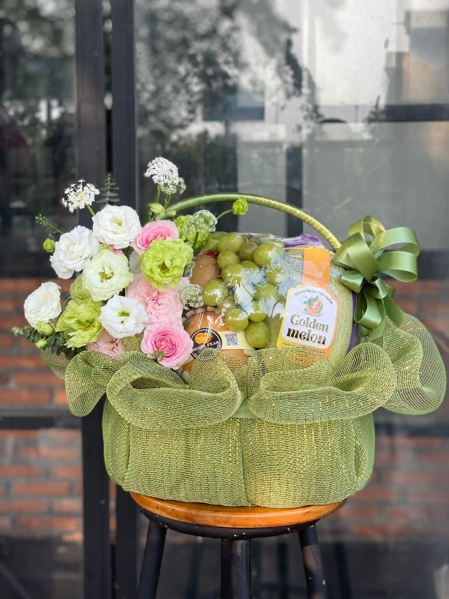 Giỏ hoa quả là món quà tinh tế kết hợp giữa sắc hương của hoasự tươi ngon, trọn vị của trái cây.