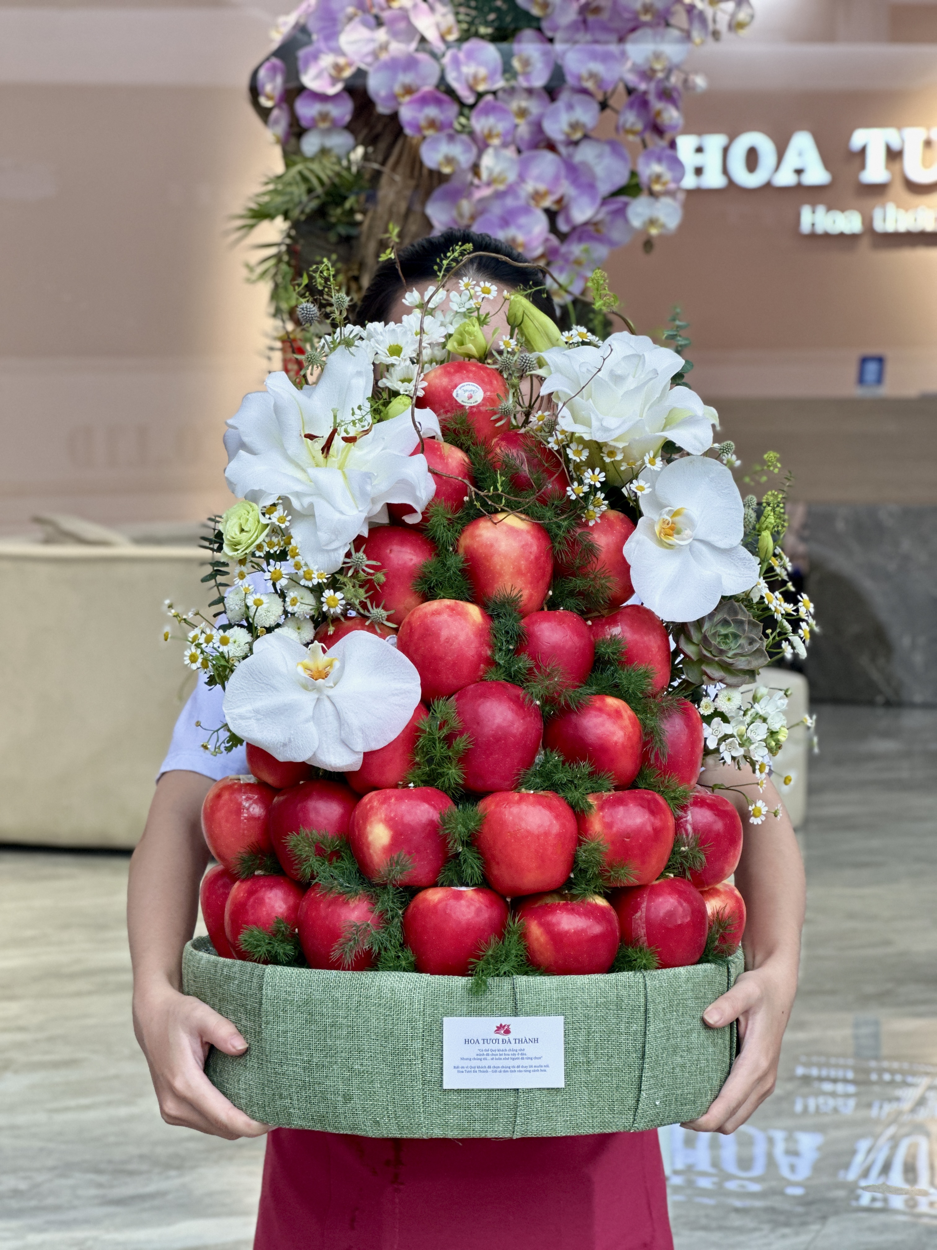 Tại Hoa Tươi Đà Thành, từng giỏ quà được lựa chọn cẩn trọng – từ loại trái cây tươi mới, cách sắp xếp cân đối, đến điểm nhấn là những nhành hoa thanh nhã – tạo nên một tổng thể sang trọng, trang nhã và đầy ý nghĩa.